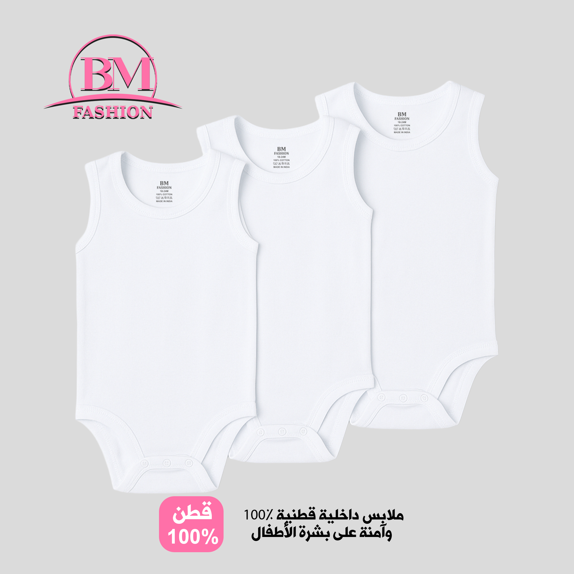 سالوبيت / تبان "سليب" داخلي سادة قطعة واحدة للأطفال، البكج الواحد من 3 حبات، بدي بدون أكمام مع كبك سفلي لسهولة التبديل، مصنوع من القطن المريح والآمن لبشرة طفلك، أبيض.
