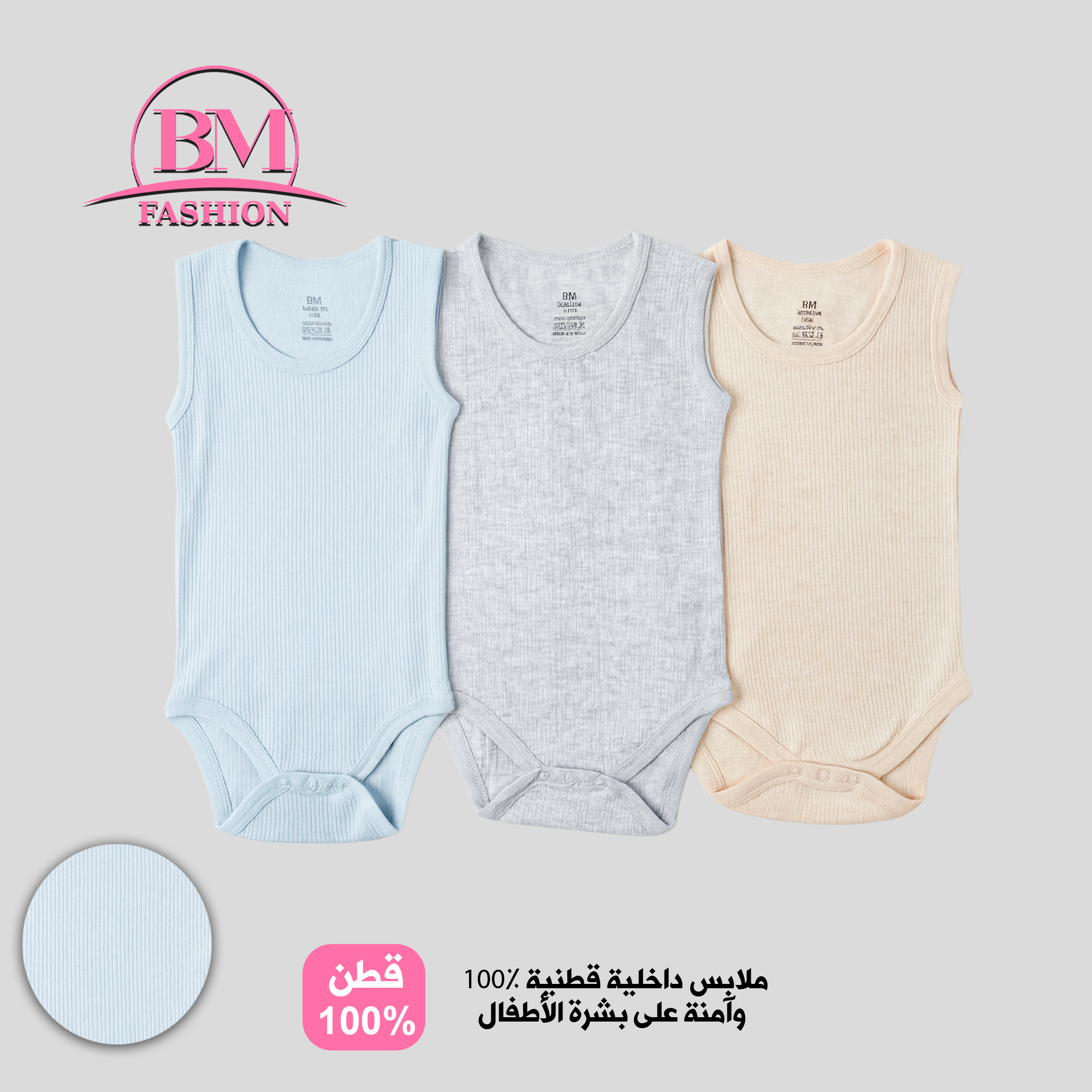 سالوبيت / تبان "سليب" داخلي مقلم/مُضلع قطعة واحدة للأطفال، البكج الواحد من 3 حبات، بدي بدون أكمام مع كبك سفلي لسهولة التبديل، مصنوع من القطن المريح والآمن لبشرة طفلك، و بثلاثة ألوان عصرية.