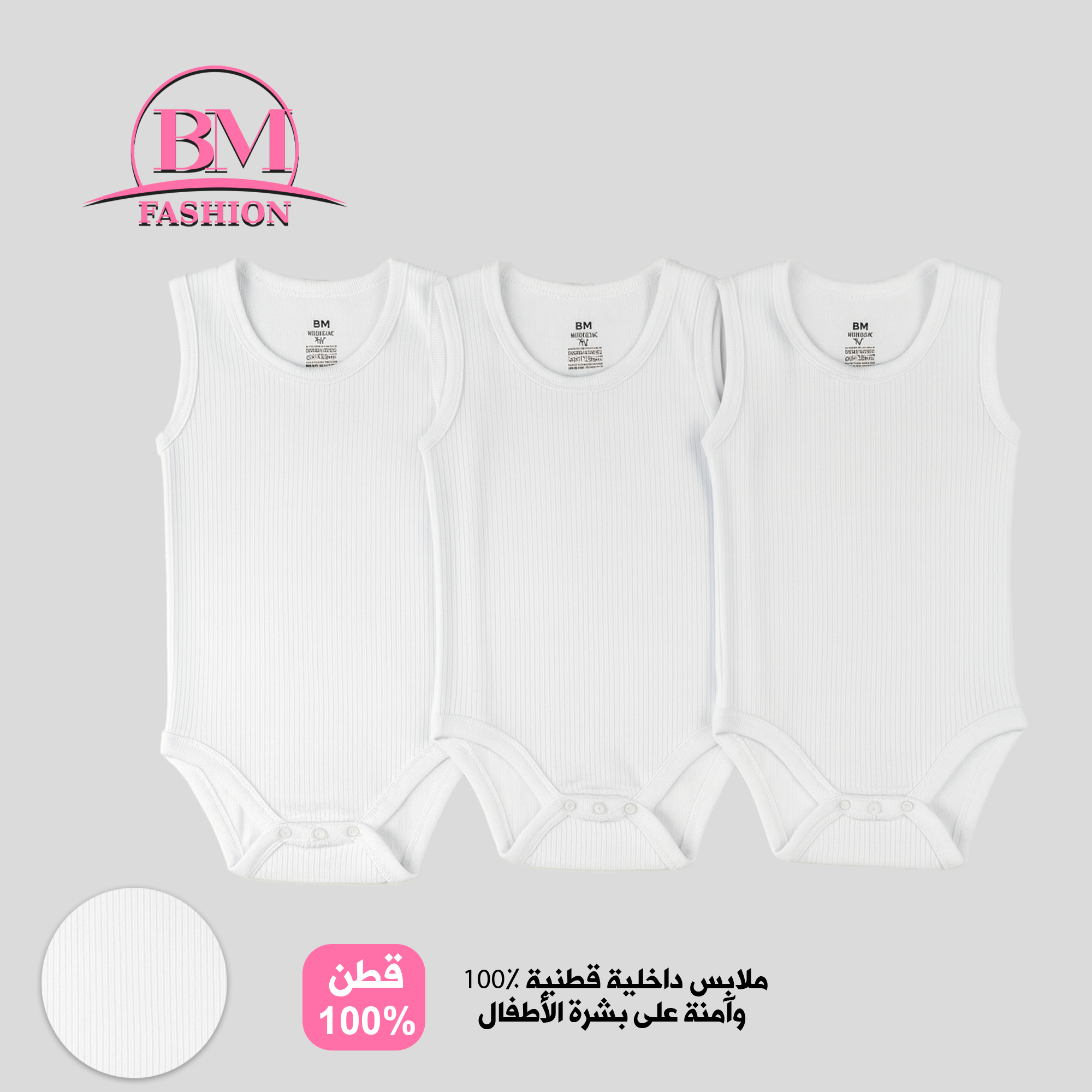 سالوبيت / تبان "سليب" داخلي مقلم/مُضلع قطعة واحدة للأطفال، البكج الواحد من 3 حبات، بدي بدون أكمام مع كبك سفلي لسهولة التبديل، مصنوع من القطن المريح والآمن لبشرة طفلك، أبيض.