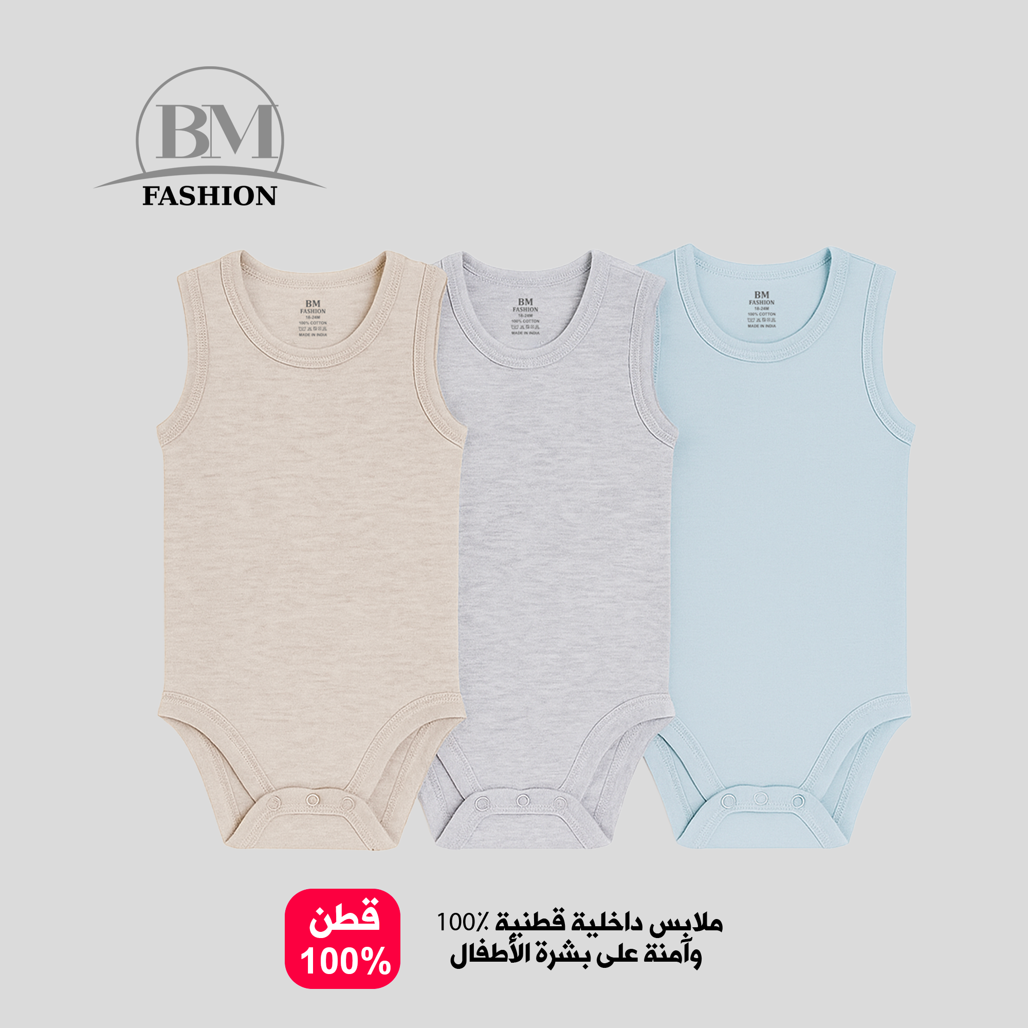 سالوبيت / تبان "سليب" داخلي سادة قطعة واحدة للأطفال، البكج الواحد من 3 حبات، بدي و بدون أكمام مع كبك سفلي لسهولة التبديل، مصنوع من القطن المريح والآمن لبشرة طفلك، و بثلاثة ألوان هادئة.