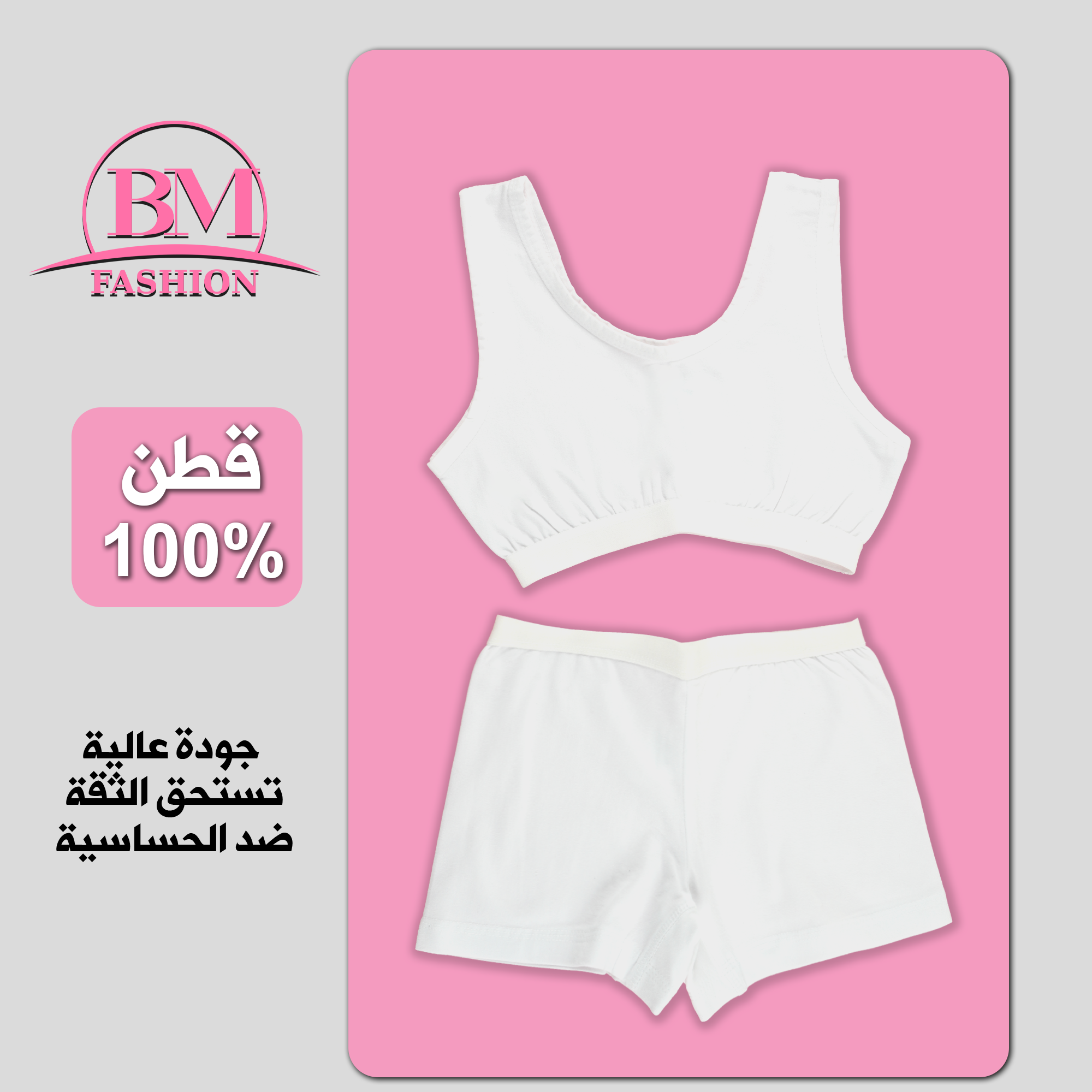 طقم داخلي بناتي كت حفر سادة مصنوع من القطن لون أبيض