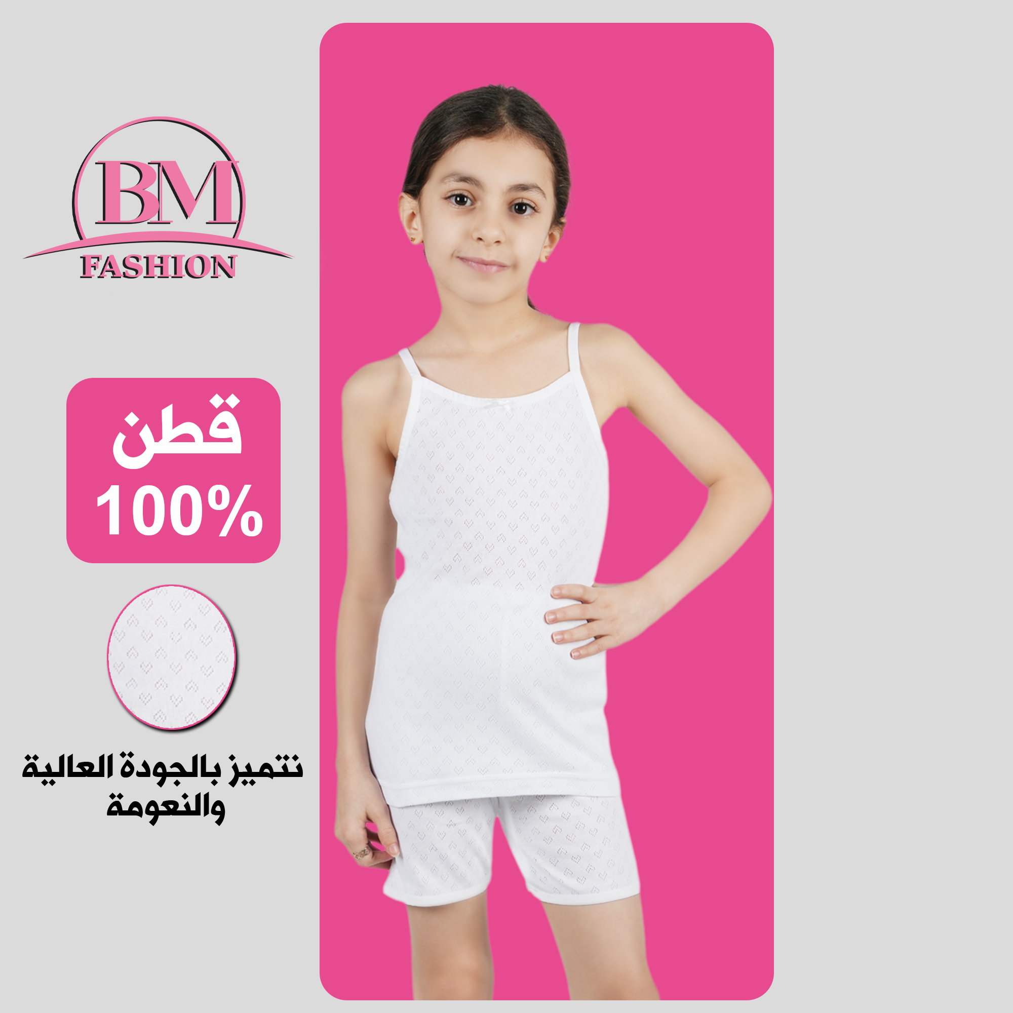 طقم بناتي علاق جاكار مخرم أبيض – BM Fashion
