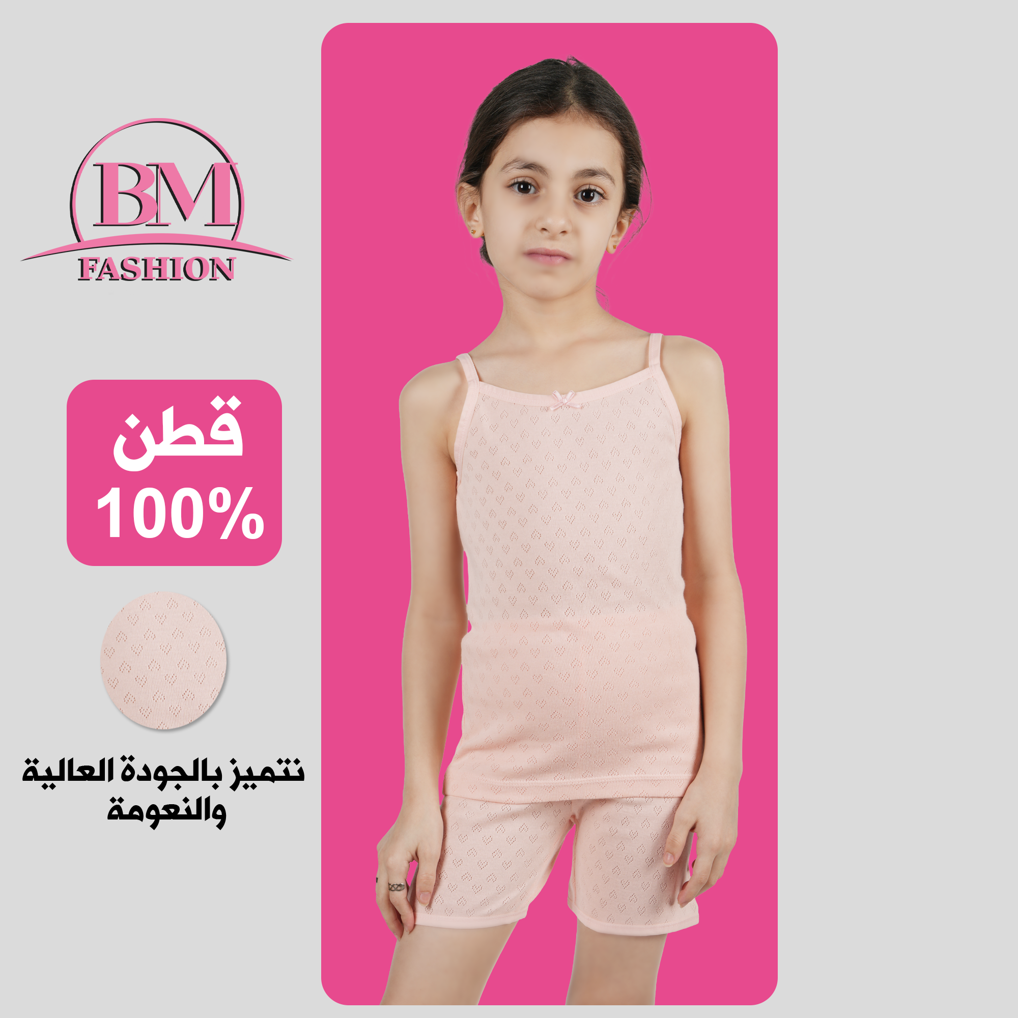طقم بناتي علاق جاكار مخرم برتقالي فاتح – BM Fashion
