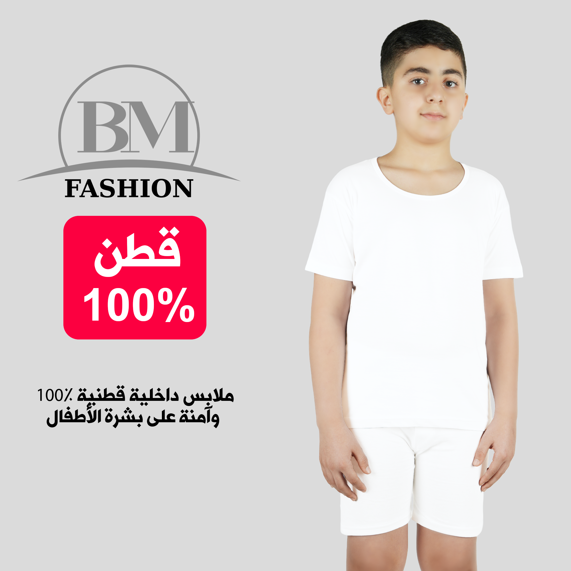 طقم داخلي ولادي نص كم مع شورت سادة مصنوع من القطن