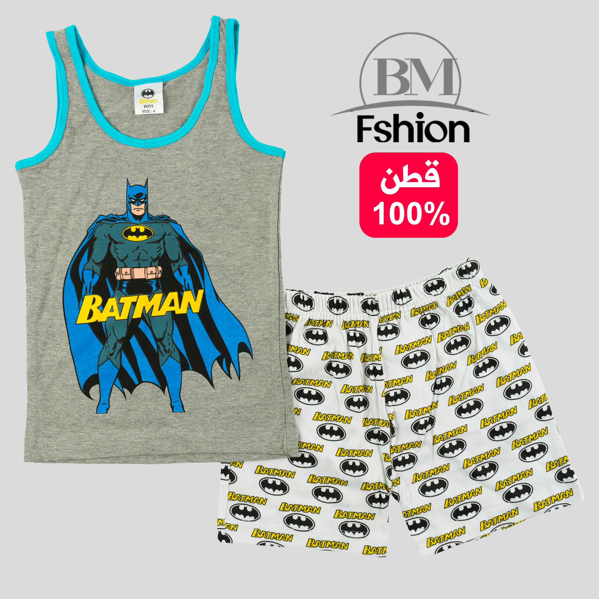 طقم شورت و فانيلا ولادي حفر صيفي برسومات، مصنوع من القطن، لون رمادي