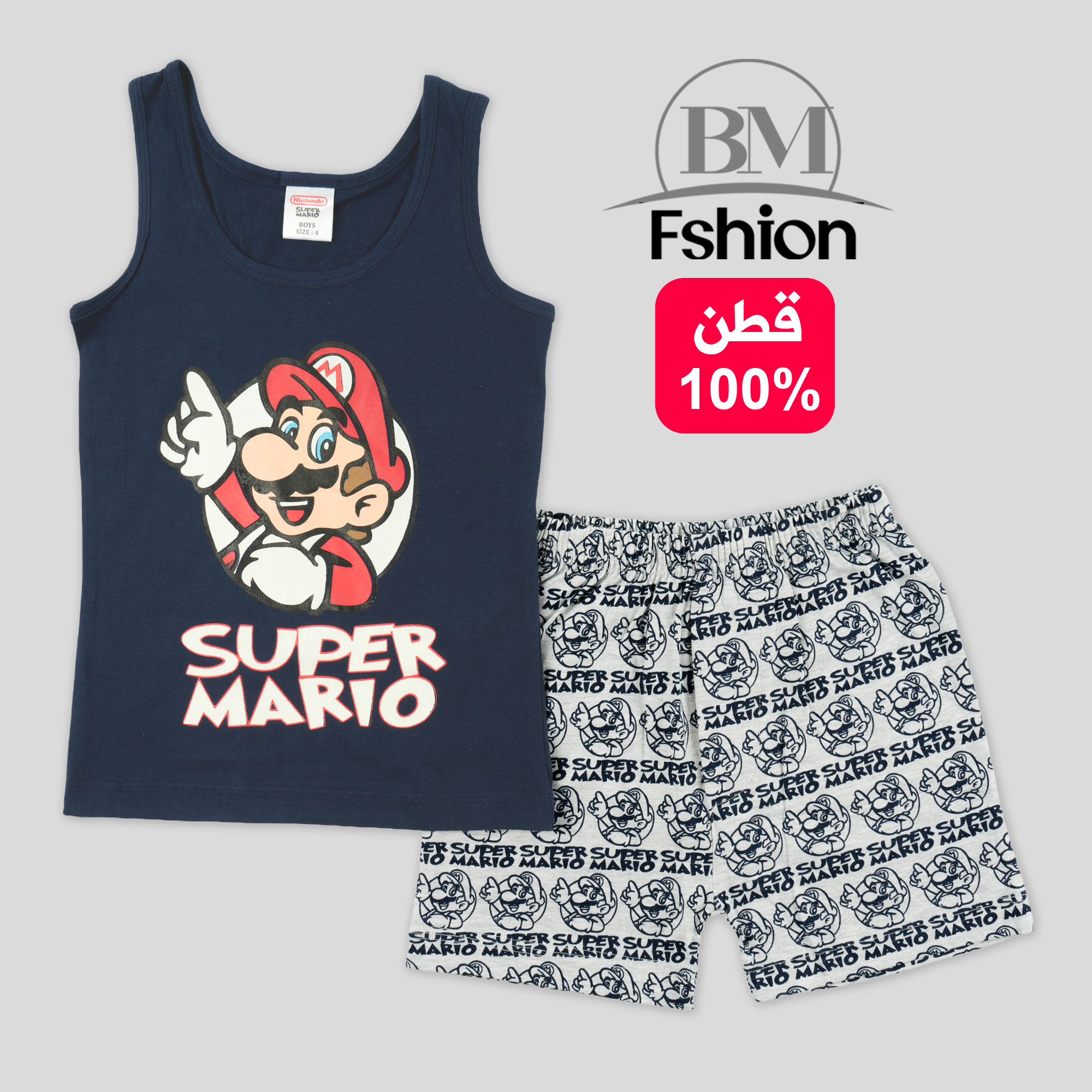 طقم شورت و فانيلا ولادي حفر صيفي برسومات، مصنوع من القطن، لون كحلي