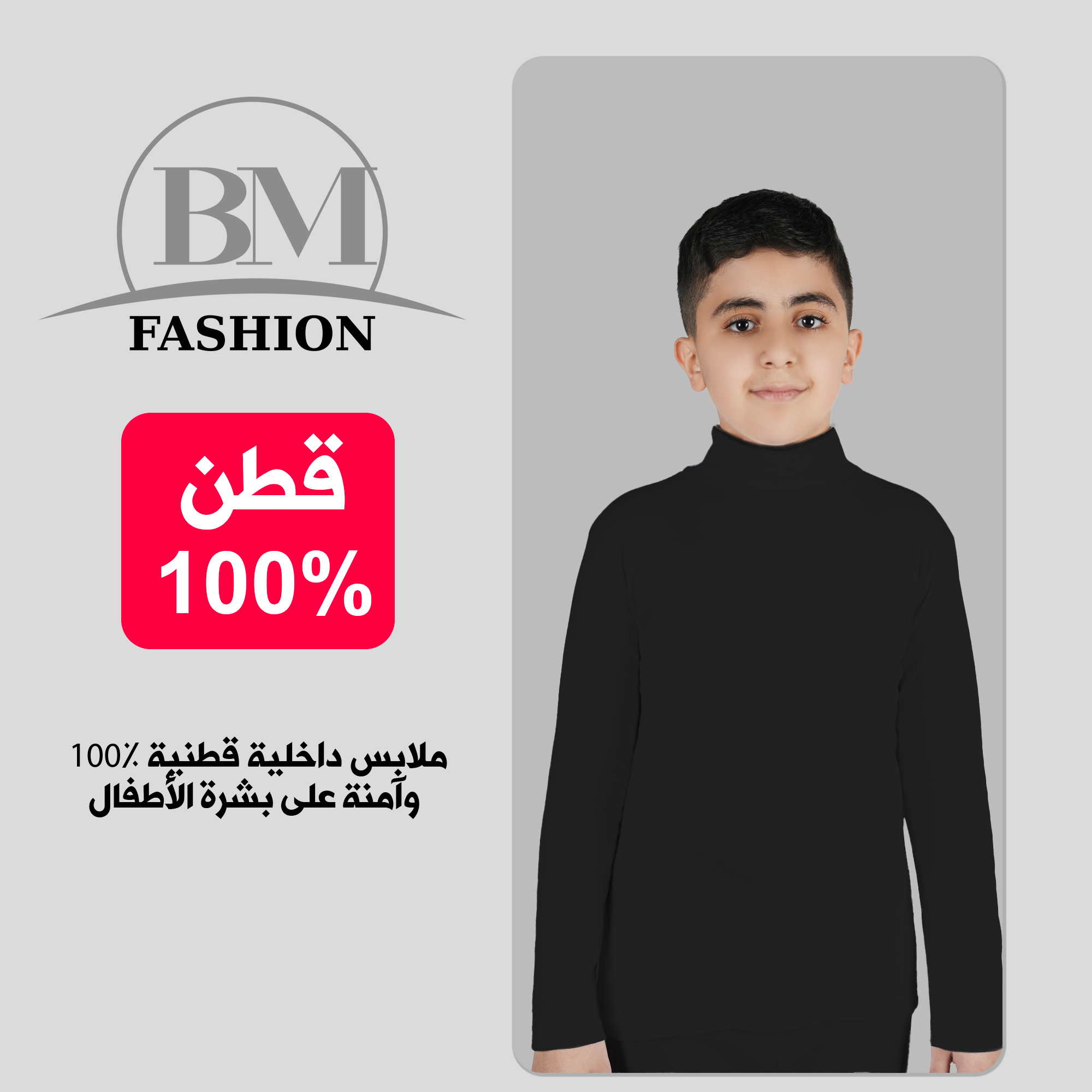 بلوزة شتوية ولادي برقبة عالية ذات أكمام طويلة و مصنوعة من القطن، لون أسود.